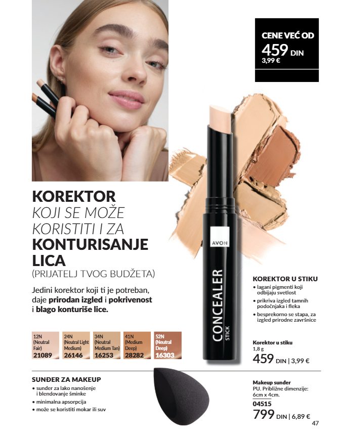 Avon Make Up Luxe korektor - Jedinstveni korektor optički prikriva nesavršenosti i čini ten besprekornim. Prikriva podočnjake i osvežava kožu u predelu oko očiju. 2 g. Fair Creme - Light Creme.