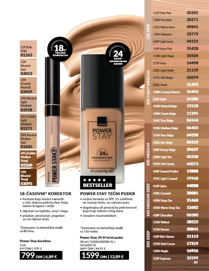 Avon Dugotrajni tečni puder - Comfort Wear kompleks štiti pigmente i čini ih otpornim na uticaje spoljnih faktora tako da šminka duže ostaje sveža i besprekorna. Hidrira uz upijanje viška masnoće. Za normalnu do masnu kožu, srednja do visoka prekrivenost, SPF 12. Pruža prijatan osećaj i postojanost i do 18h. 30 ml. Ivory - Medium Beige - Natural Beige - N ude - Shell.