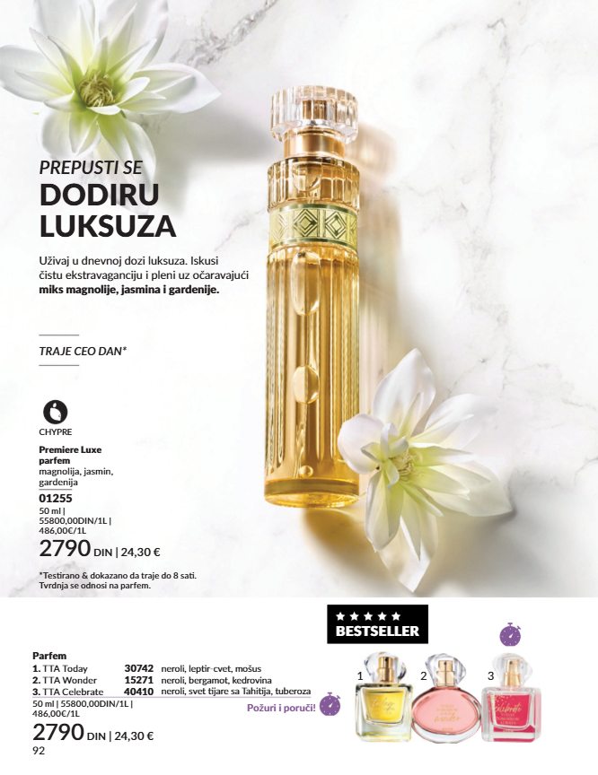 Avon Parfemi Lilly Soft Musk toaletna voda - Nežan i senzualan buket suptilnih frezija, nevena i zumbula, upakovanih u cvetne note božura i belog ljiljana, u balansu sa drvetom kašmira, slatke vanile i mošusa. Osetite snagu senzualnost i ženstvenost! Frezija, vodenasti zumbul, neven, Beli ljiljan, đurđevak, božur. 50 ml.